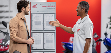 As revisões periódicas são um direito seu e devem ser realizadas conforme as condições descritas no Manual do Proprietário. E mais: quando você compra uma motocicleta Honda, a mão de obra das duas primeiras revisões é gratuita. Por isso, programe-se e não deixe de fazê-las. Essas revisões são fundamentais para manter a sua motocicleta nas condições ideais de uso.